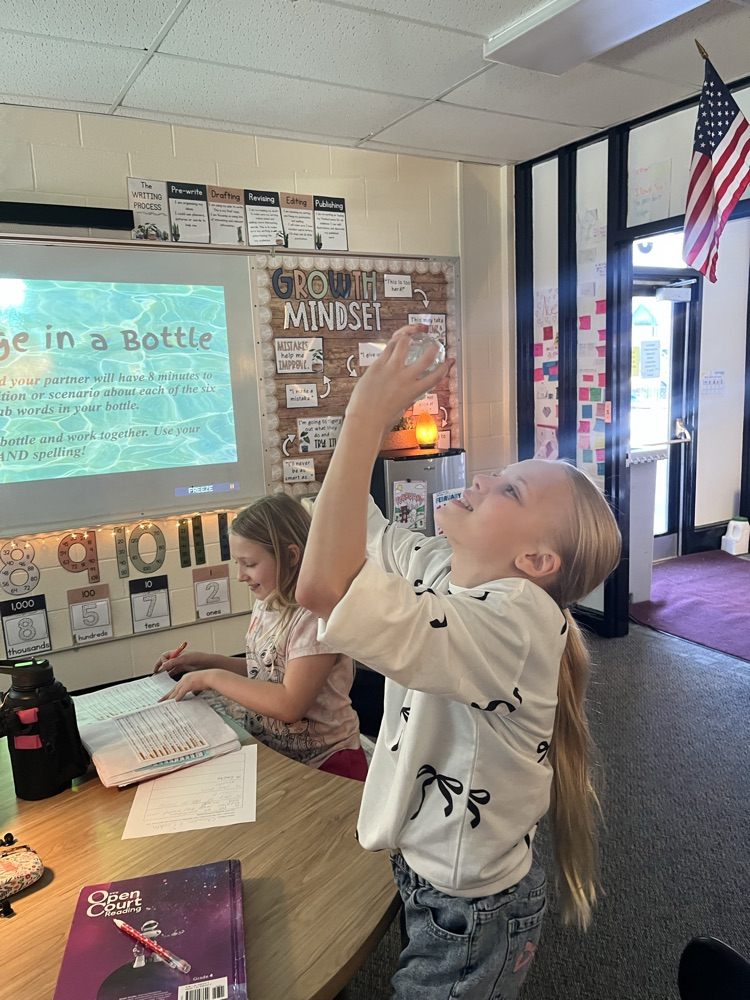 Who says practicing vocabulary can't be fun? In 4th grade we are always trying new ways to study our vocab. This week we tried a new game called "Message in a Bottle." The class was put in pairs and had only 7 minutes to come up with their own definition or scenario to match each vocabulary word that was inside a bottle of water.
